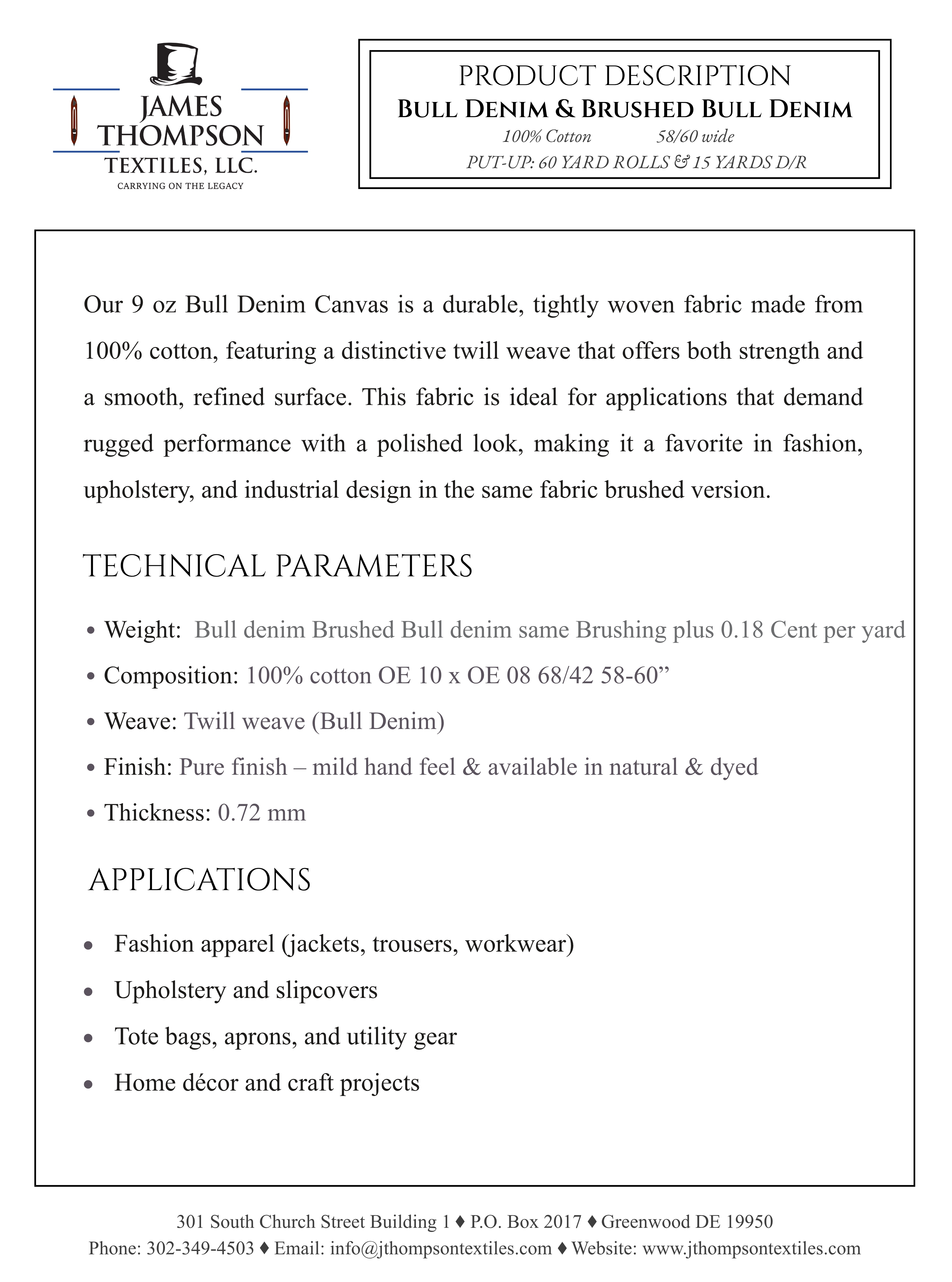 Bull Denim & Brushed Bull Denim Collection