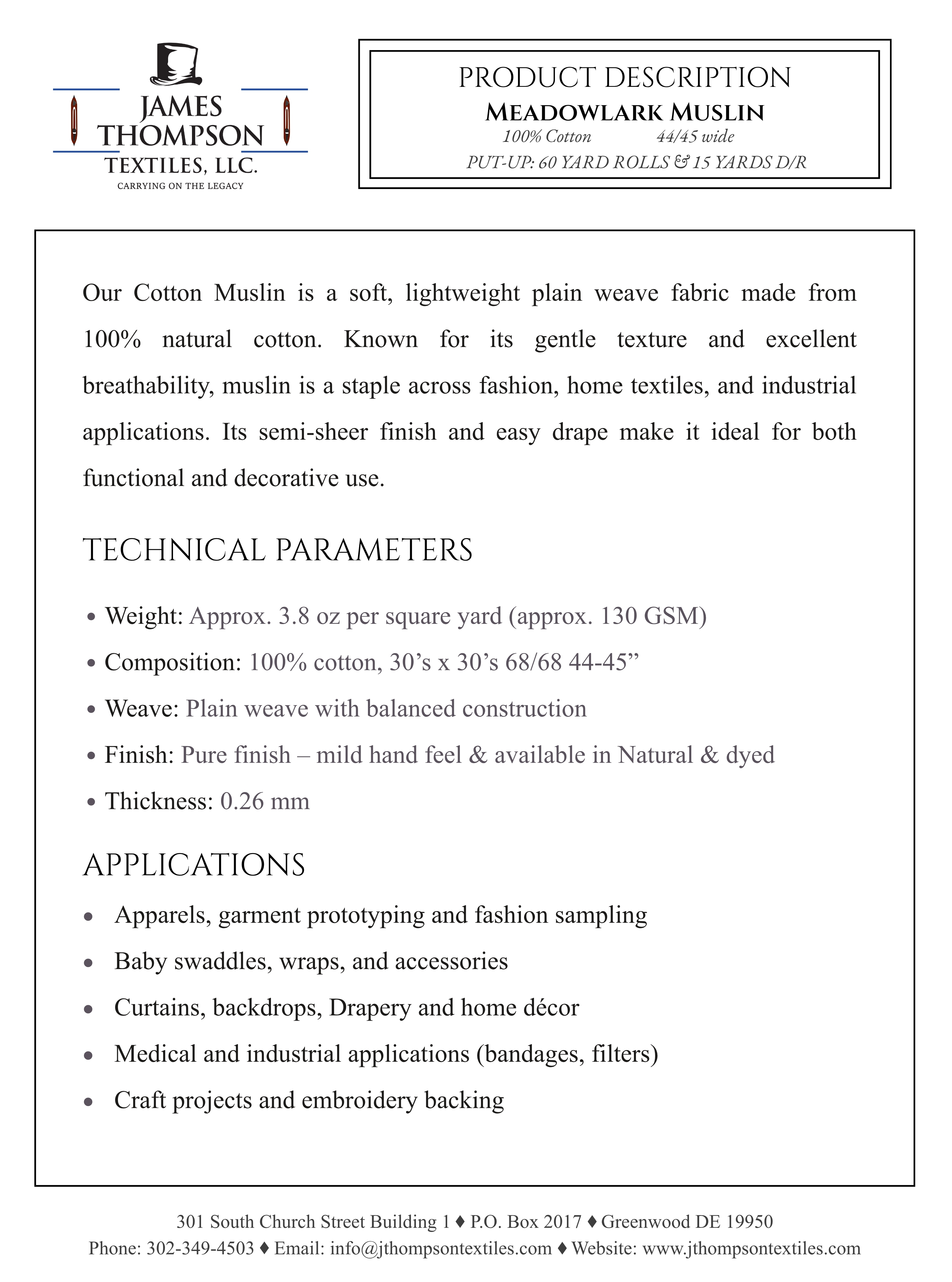 Our Cotton Muslin is a soft, lightweight plain weave fabric made from 100% natural cotton. Known for its gentle texture and excellent breathability, muslin is a staple across fashion, home textiles, and industrial applications. Its semi-sheer finish and easy drape make it ideal for both functional and decorative use.