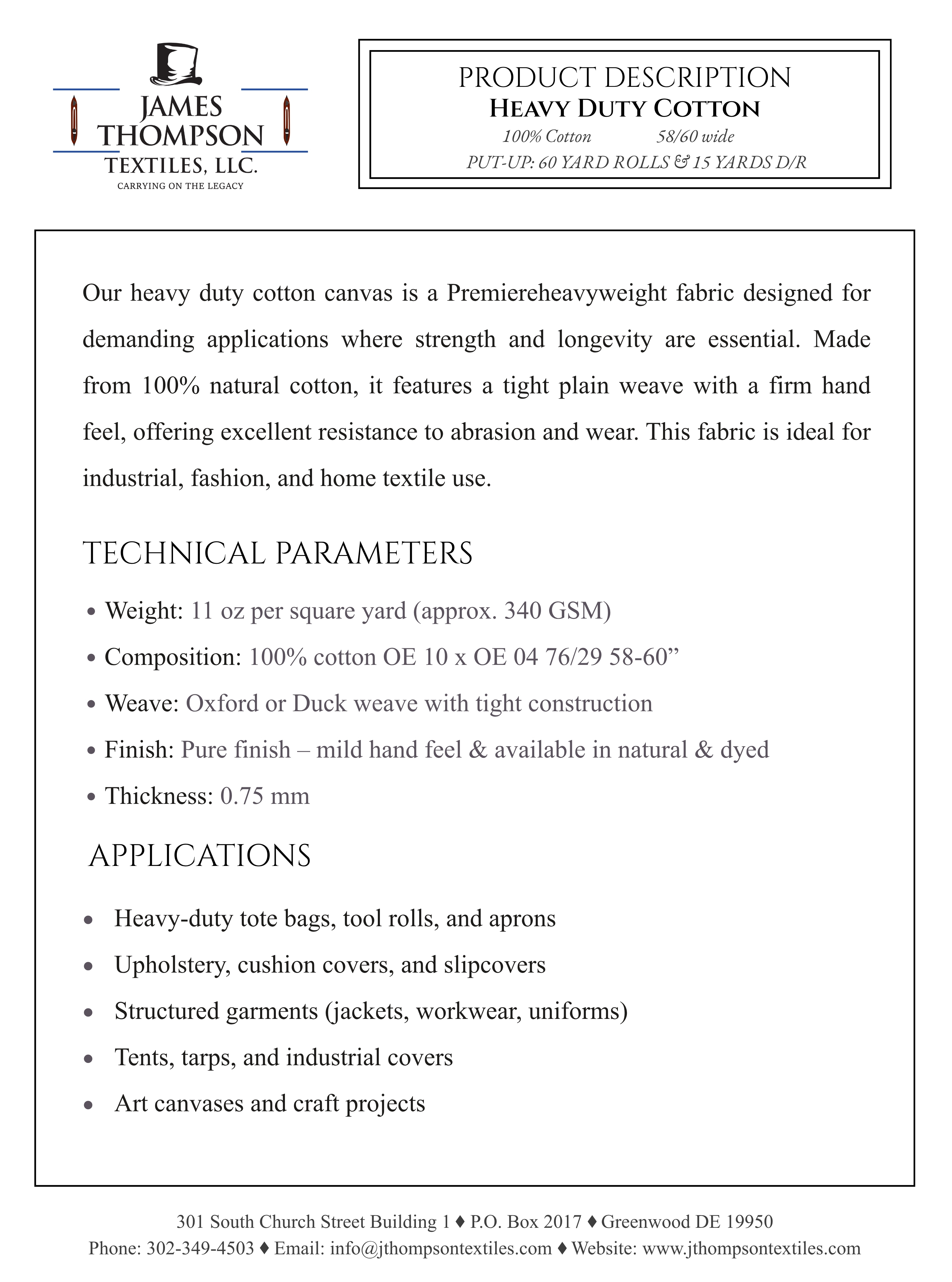 Heavy Duty Cotton Canvas Collection